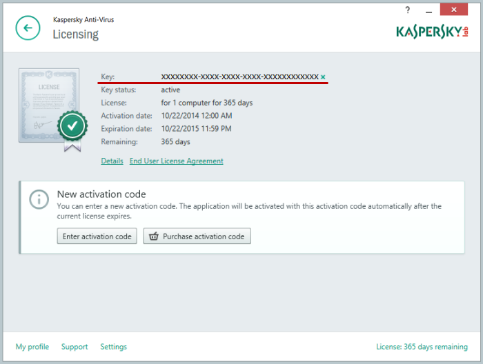 4 - گزینه About license را انتخاب کنید؛ کلید لایسنس بالای صفحه مقابل عبارت Key نوشته شده است.